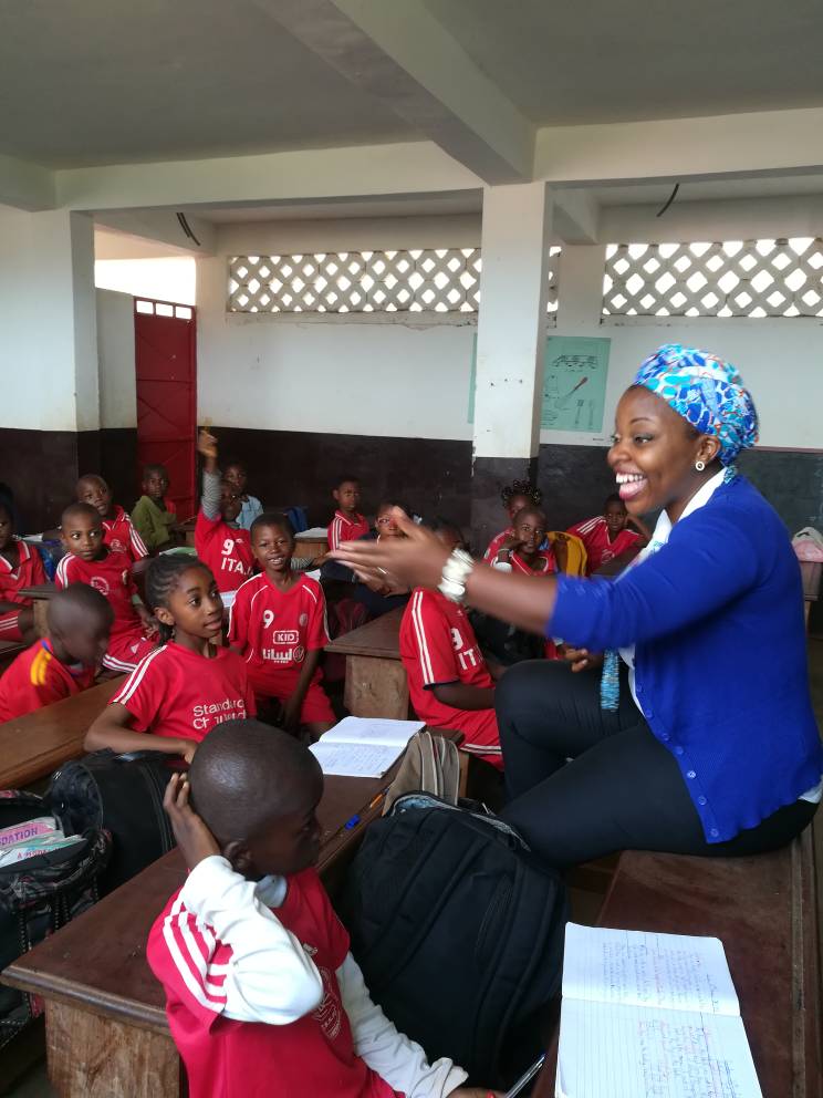 Olivia Mukam Wandji volunteer reading at Tassah College, Yaounde |