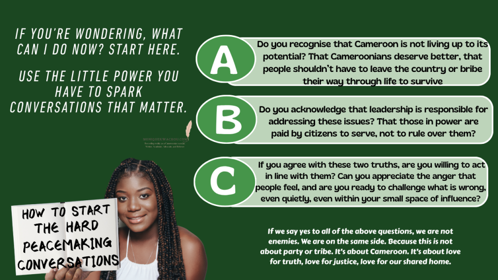 Now, let’s think of Cameroon. If we think critically, we have already seen this thing play out in Cameroon, with a horrific end. The ongoing Anglophone crisis didn’t start with what we now call “Amba”. Before that, there were teachers and lawyers, peaceful, moderate people asking to be heard and for legal systems to be respected and issues addressed. And they were mocked, arrested, and belittled. When you crush the moderates, when you show that peaceful protest and following due process means nothing, you create a power vacuum. And in that vacuum, beasts rise. That is how we now have the scourge of Amba and a people turned on themselves. People keep saying the Anglophone crisis became violent because guns got into the wrong people’s hands or drugs spread among the youth. But no, before the guns and the drugs, hope left their hearts. When people no longer believe that the peaceful path works, when they no longer trust that justice or accountability exist, what else do you expect them to become? You kill the last bit of hope people have in dialogue when you turn dialogue into a bureaucratic charade (see the 2019 “national dialogue”) and use peace marches for your selfish ends. And once hope dies, people devolve. They stop caring.